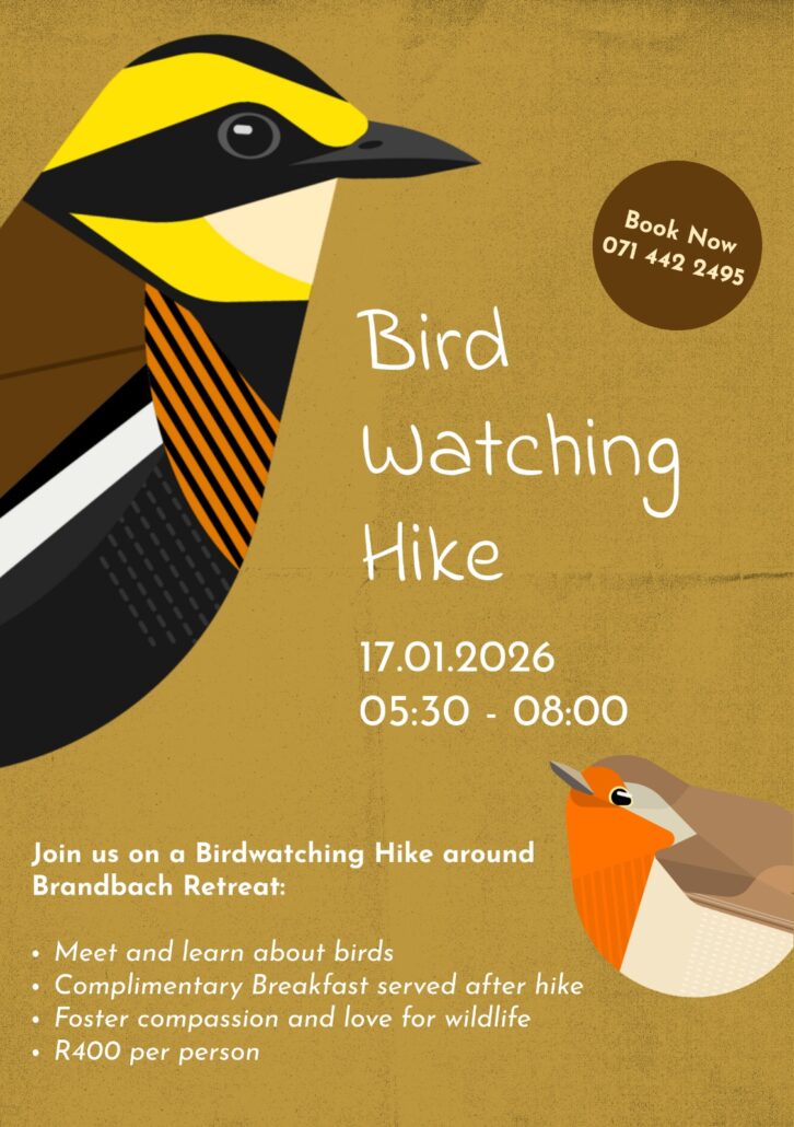 Join us for a guided bird-watching hike on January 17, 2026, from 5:30 AM to 8:00 AM. Located in Gauteng’s tranquil wetlands between Bronkhorstspruit and Cullinan (just 45 minutes from Pretoria), you’ll spot native species like waterfowl, herons, raptors, and even endangered birds such as the African Marsh Harrier or Secretarybird. Gain insights into their ecosystem roles, enjoy a complimentary breakfast, and connect with nature—all designed to foster clarity and inspiration as you embark on the new year.
